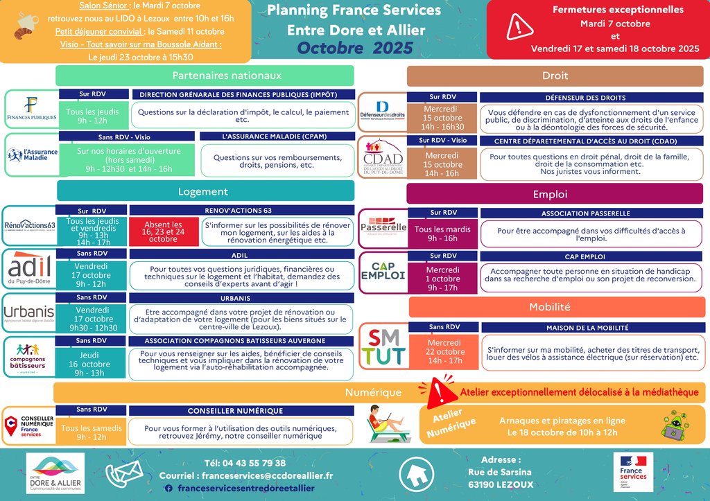 FRANCE SERVICE: PLANNING ET ANIMATIONS ENTRE DORE ET ALLIER