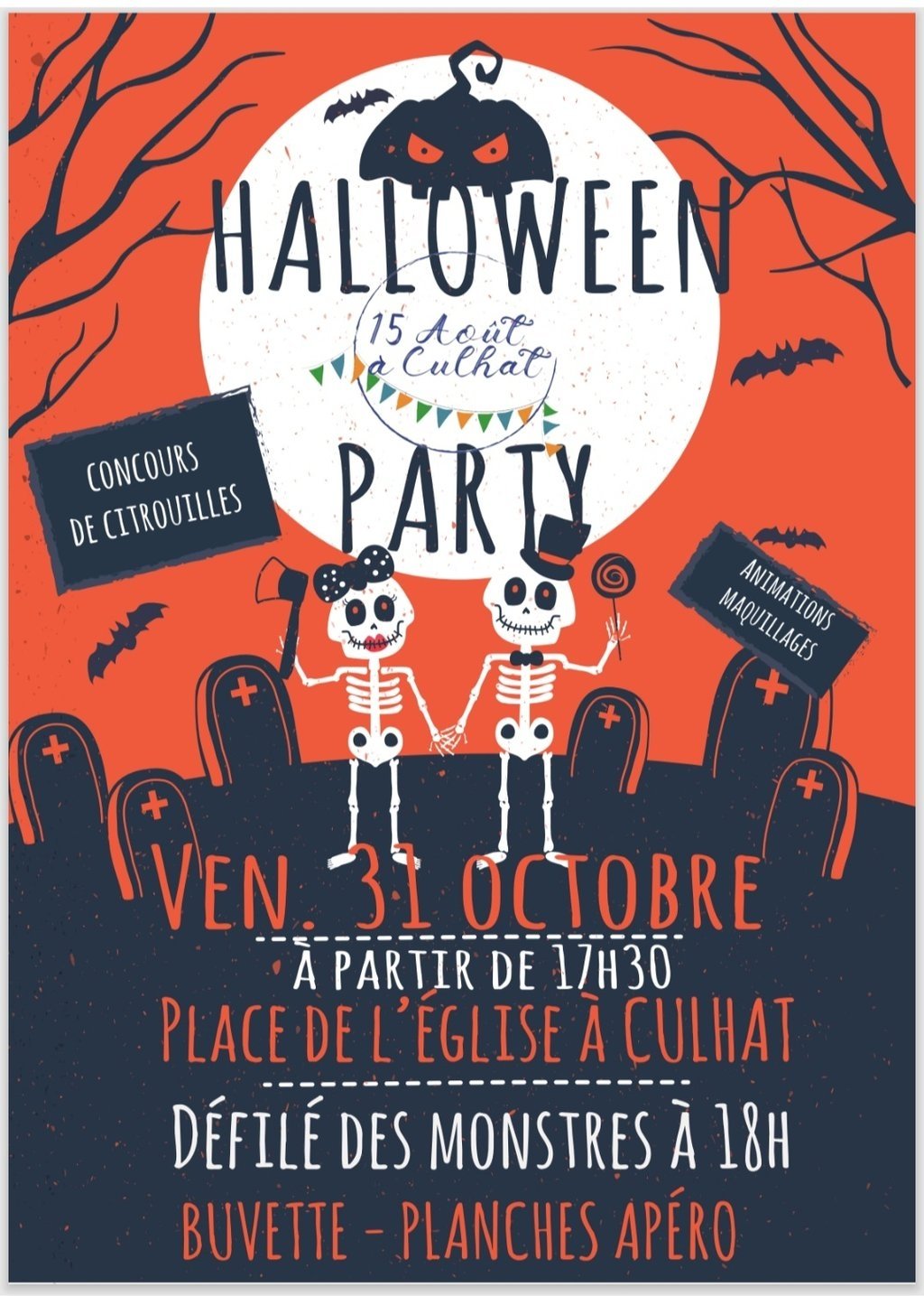 L'association 15 août à Culhat organise une Halloween part vendredi 31 octobre 2025 à partir de 17 h 30 place de l'église.