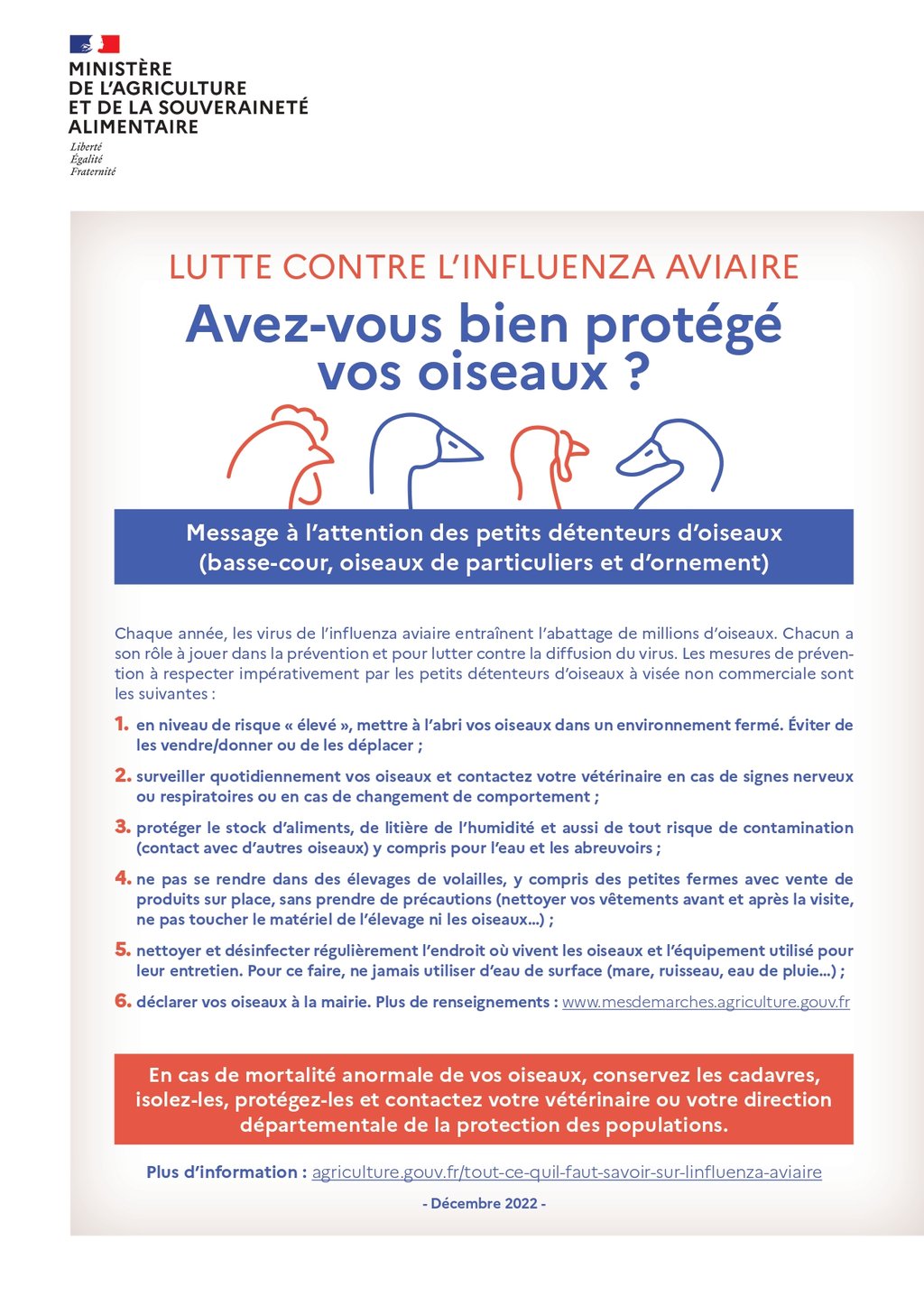 Circulaire préfectorale influenza aviaire