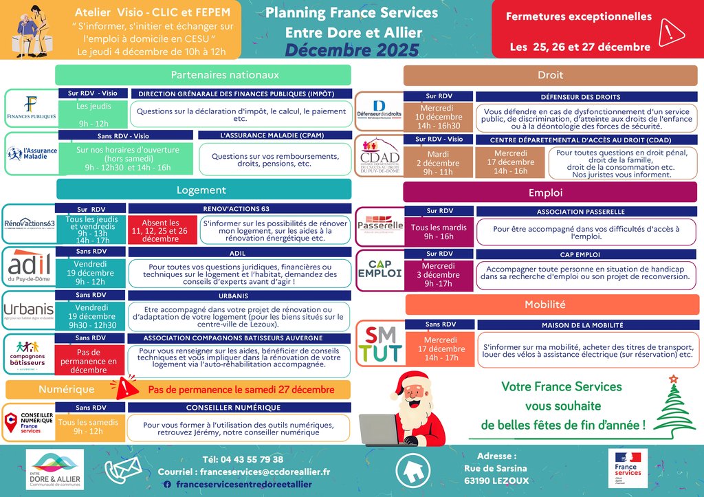 đ ĂvĂ©nements de fin dâannĂ©e 2025 dans notre Espace France Services Entre Dore et Allier (Lezoux) avec inscriptions obligatoires : 04 43 55 79 38
