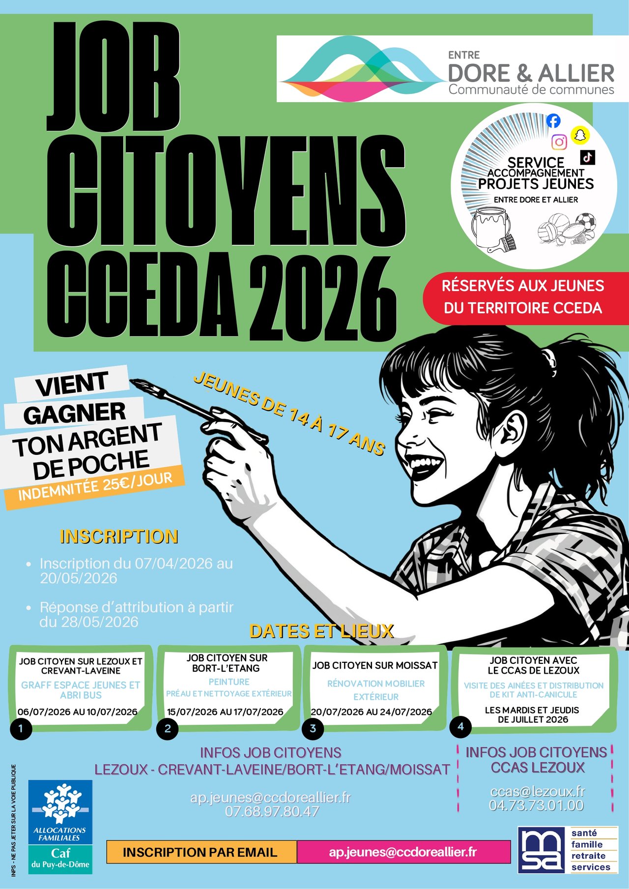 Les jobs citoyens reviennent cet été sur le territoire de la Communauté de Communes Entre Dore et Allier !