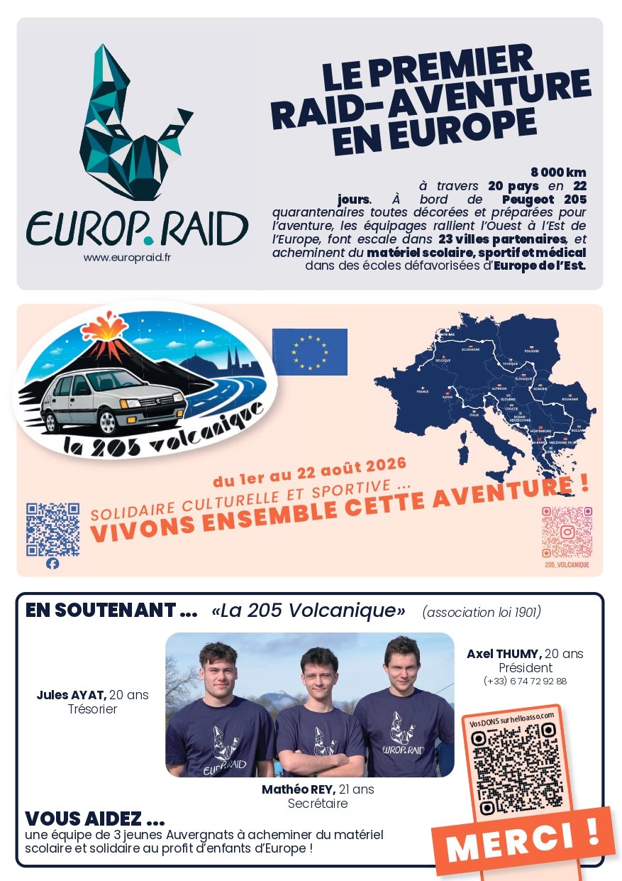 Habitant de Culhat, Jules participe avec deux autres jeunes auvergnats, à l'Europ'Raid, raid humanitaire consistant à traverser plus de 8000kms en Peugeot 205 afin d'acheminer 70 kg de matériel destiné aux enfants défavorisés des pays de l'Est.